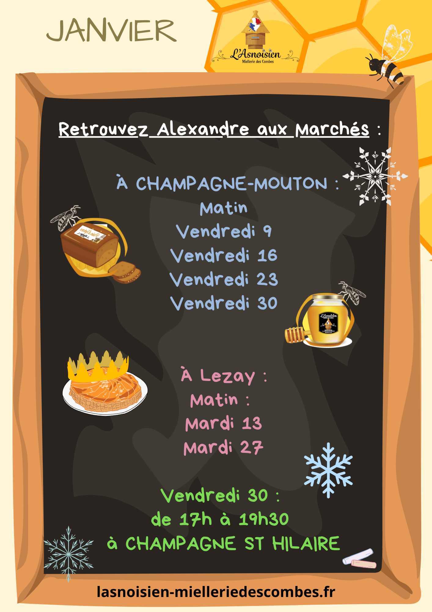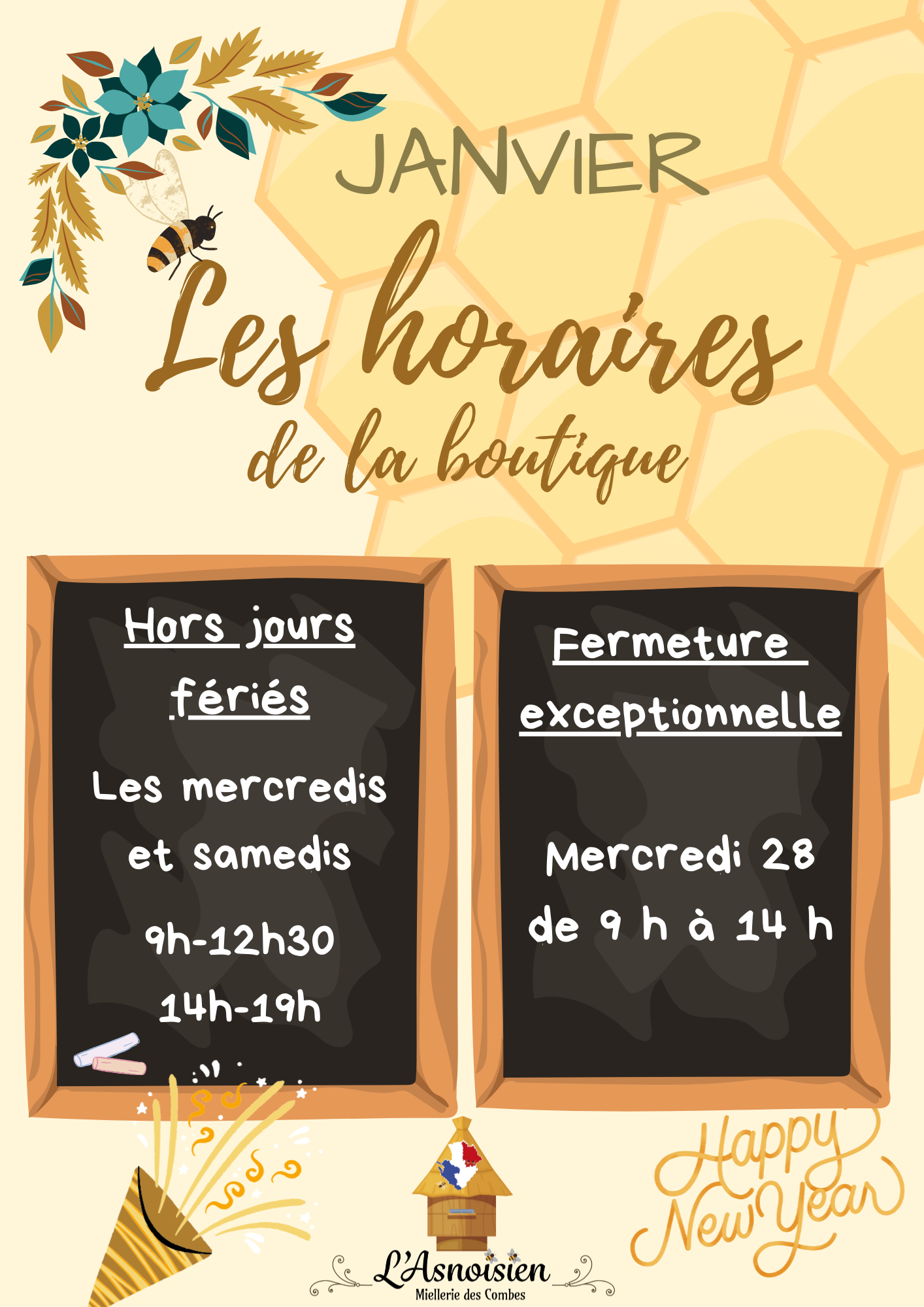 Retrouvez ci-dessous le planning des horaires de la boutique et des marchés pour le mois de janvier.